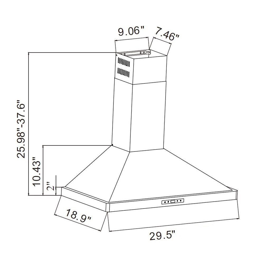Novel PRO-NWB01 is a 30 inches stainless steel wall mount range hood specially designed with Hi-Speed and Ultra Quiet 3-speed motors. The three levels of exhaust power allow the user to suit different styles of cooking, reduce noise, and improve the efficiency of energy use.