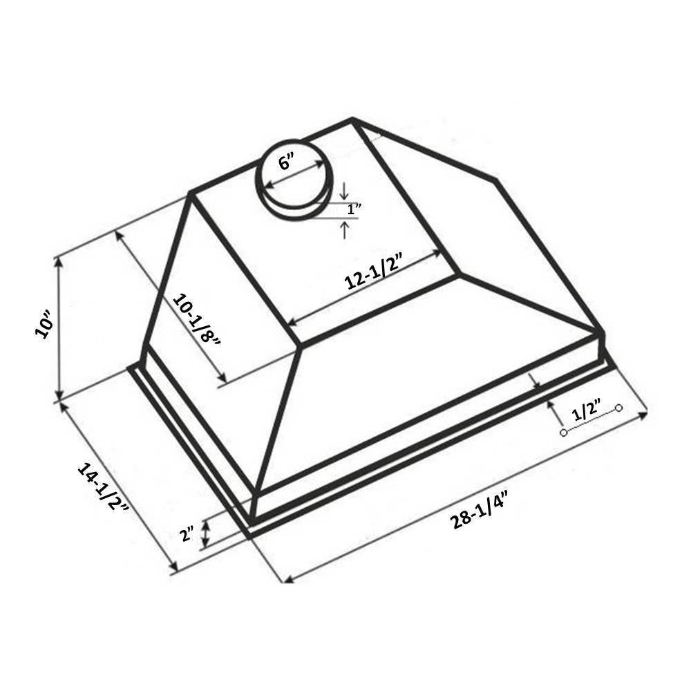 Crown 30-inch Insert Mount Range hood features quiet whisper operation with 3-fan speed push button control. Maximum Exhaust Air Flow is up to 750 CFM, with 6 Inch diameter duct aluminum pipe, the hood also features easy removable stainless steel baffle filters and a squirrel cage fan.