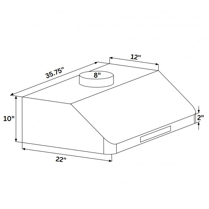 - Range hood comes with 1-year manufacturer warranty on all parts. Dimension are 35.75" X 22" X 10"