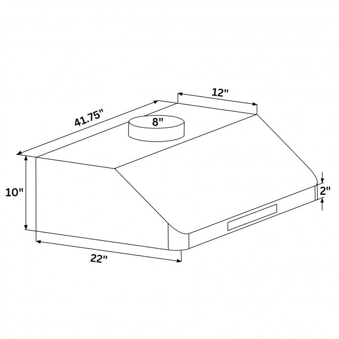 - Range hood comes with 1-year manufacturer warranty on all parts. Dimension are 41.75" X 22" X 10"
