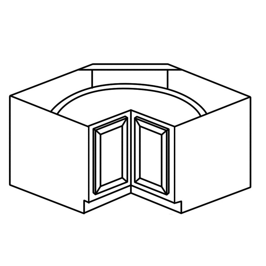 Lazy Susan corner cabinet with a bi-fold door and 2 wood Lazy Susan shelves. It will take up to 33" of wall space from the corner out on each wall.