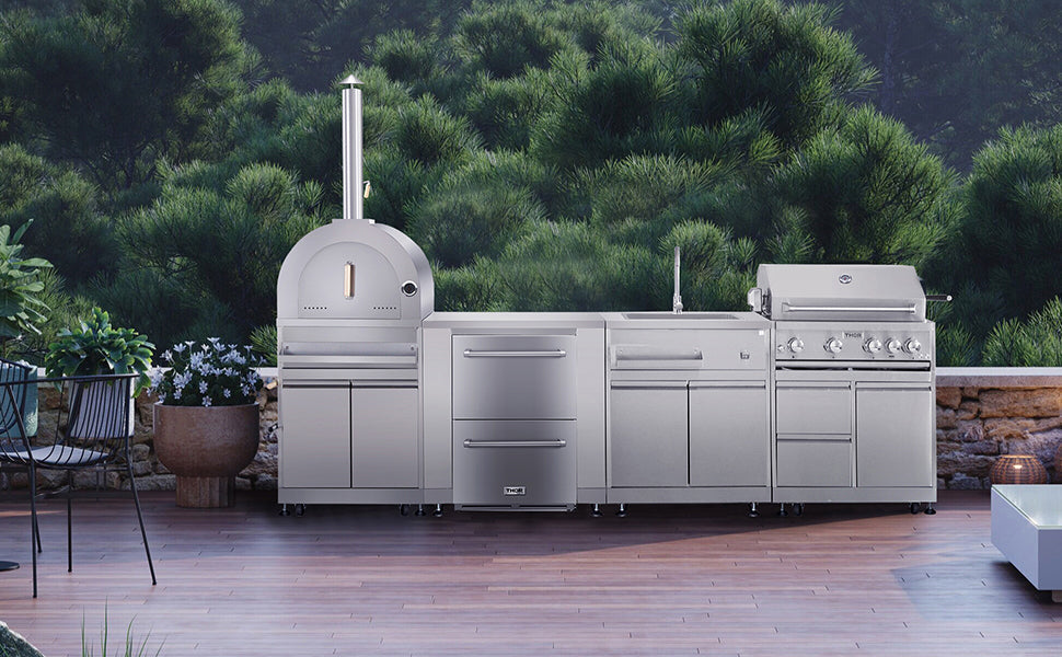 - THOR Kitchen offers the power and performance of a premium pro-style appliance at a practical price. Beef up your outdoor kitchen with THOR Kitchen’s Modular Outdoor Kitchen Suite. The suite features a sleek, masculine design aesthetic with recessed handles and large surface areas.